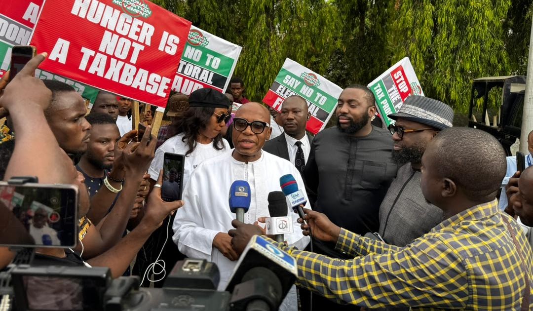 Former Rivers State Governor and ex-Minister of Transportation Rotimi Amaechi joined hundreds of protesters at the National Assembly complex on Tuesday, demanding the reinstatement of mandatory real-time electronic transmission of election results in the recently passed Electoral Act Amendment Bill. Amaechi, accompanied by his first son—a medical doctor—addressed demonstrators gathered outside the Senate chambers, declaring…